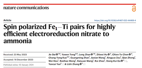 张礼知团队Nature Communications发文报道双位点自旋极化能极大促进电化学还原硝氮制氨过程
