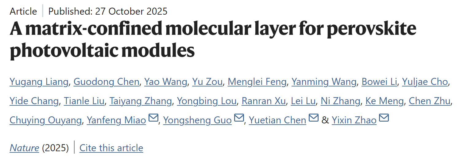 Nature发文!a片漫画 赵一新团队“基质限域分子层”型电荷传输层设计实现高效率大面积钙钛矿光伏模组