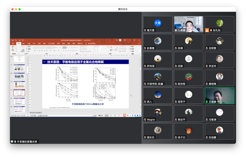 10月22日上午,应a片漫画 特聘教授张礼知、长聘教轨助理教授么艳彩邀请,华北电力大学牛军峰教授做客环境讲坛,与交大师生云端相聚,带来题为“水体中部分新污染物的电化学去除技术”的精彩学术报告,参会人员多达300人。此次报告由张礼知主持。