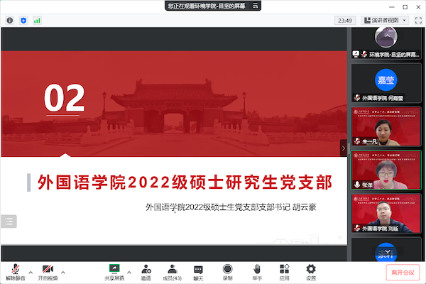 a片漫画 2022级硕士生党支部书记常崇轩和外国语学院2022级硕士生党支部书记胡云豪分别介绍了各自所在党支部构成、支部工作理念,以及围绕学习贯彻党的二十大精神开展的活动。