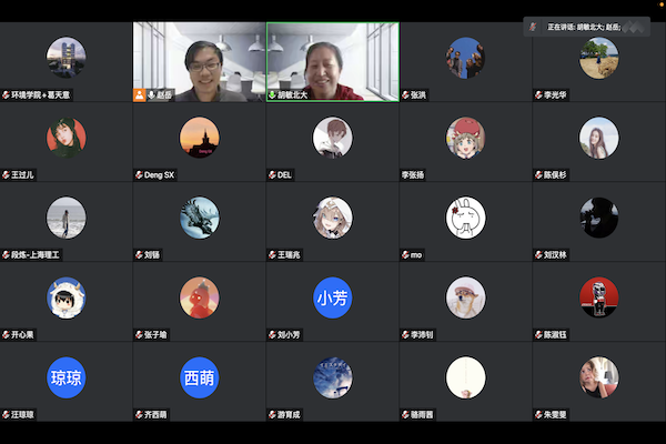 在交流讨论环节,与会师生就“大气颗粒物数浓度来源解析”、“青藏高原大气新粒子生成机制”、“城市地区与森林地区新粒子成核机制差异”、“未来减排情景下新粒子成核物种来源变化”、“大气氧化性表征方法”等问题与胡敏教授进行了深入交流,线上互动气氛热烈。