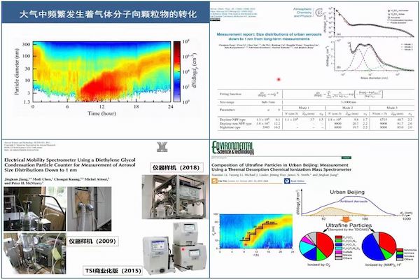新粒子生成是大气颗粒物的重要来源,在全球范围内,新粒子形成事件频发,典型城市大气环境里人为活动印迹增加了该过程的复杂性。通过发展科学仪器,在城市大气环境里开展长期外场观测,结合控制条件下的模拟实验研究,发展气溶胶动力学理论方法,量化高污染大气环境里新粒子成核速率和生长速率,探究参与该过程的组分、途径和贡献。蒋靖坤教授以往年发表的论文为线索,围绕新粒子生成的“测量”、“量化”和“解析”展开了细致讲解。