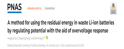 近日,a片漫画 许振明团队在著名学术期刊Proceedings of the National Academy of Sciences上发表了题为“A method for using the residual energy in waste Li-ion batteries by regulating potential with the aid of overvoltage response”的研究论文。该研究论文首次提出了利用废旧锂电池中剩余能量的新思想,构建了剩余能量利用过程中电池电位调控的机理模型与方法,为废旧锂电池剩余能量的利用开辟了新的途径。