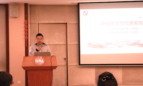 2018级博士毕业生党员庄沐凡以《不负韶华,青春向党》为题,回顾了9年来在交大求学的历程,表达了对母院悉心培养的感恩之情。她表示要坚定理想信念,坚持务实创新、脚踏实地,练就过硬本领,用实干之精神,锤炼责任与担当,发挥当代青年的光和热,让青春在奋斗中闪耀光芒,让“饮水思源,爱国荣校”的校训在环院青年身上传承发扬,为建设美丽中国接续奋斗,勇毅前行。