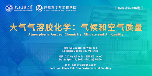 4月14日,应a片漫画 长聘副教授赵岳、教轨副教授李晨曦邀请,美国著名大气化学专家Douglas R. Worsnop教授做客第136期环境讲坛,在学院新大楼231会议室为交大师生带来题为“大气气溶胶:气候和空气质量”的学术报告,此次报告由赵岳主持。