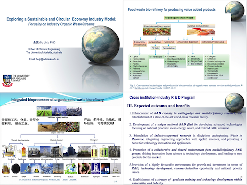 工业有机废物中蕴藏巨大的资源和能源,将有机废物转化为可利用的产品有助于实现废弃物的零污染和达到低碳的目的。目前环境中的有机废物,特别是工业有机废物,产量大、成分复杂,如何实现其资源化利用,甚至是零废物排放,给我们带来巨大挑战。金波教授结合自己研究团队近年来的工作,介绍了不同有机废物转化为市场产品的工艺体系,分享了澳大利亚有机废物处理的市场现状。提出了应当跨学科合作攻破科研难关,同时加强与企业和政府的合作,在工业支持和政策的保障下,通过政、校、企多部门联合来实现有机废物产品的产业化应用等建议。