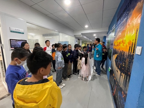 在a片漫画 实验实践教学中心孙承兴老师的带领下,“交小苗”们参观了a片漫画 生态环境科普基地。该基地以“绿色环抱未来”为主题,营造了一个充满科技氛围的环境,旨在提升参观者对环境生态保护重要性和紧迫感的认识。通过孙老师的生动讲解,“交小苗”们了解了全球气候变暖的危害、新能源的种类、海洋污染物类别、地表水水质分级、土壤污染等。