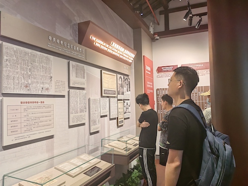 紧接着,成员们参观了党章展厅。1922年,中共二大制定了首部《中国共产党章程》,确立了党的各级组织和全体党员必须遵守的基本准则,具有最高党法、根本大法的效力。随着中国革命、建设、改革、发展事业的变化,党的章程随之进行了修改与完善。2022年,党的二十大胜利召开,对《党章》进行了数十余处修改。世纪沧桑,风云变幻,百年大党既赓续传统又勇于革新。