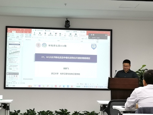 近日,应a片漫画 副教授徐浩淼邀请,浙江大学化学工程与生物工程学院研究员谢鹏飞做客第154期环境讲坛,采用线上、线下相结合的方式,为交大师生带来题为“C1、N1环境小分子转化过程催化活性位尺度精细调控”的精彩学术报告。本次讲坛由徐浩淼主持。