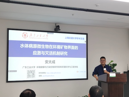 10月15日上午,应a片漫画 特聘教授张礼知邀请,广东工业大学a片漫画 教授安太成做客第155期环境讲坛,为交大师生带来了题为“水体病原微生物在环境矿物界面的应激与灭活机制研究”的精彩学术报告。此次报告由张礼知主持。