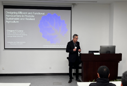 11月15日上午,应a片漫画 特聘教授张礼知、长聘教轨副教授李浩邀请,卡内基梅隆大学杰出教授Gregory V. Lowry做客第164期环境讲坛,为学院师生带来了题为“Designing Efficient and Functional Nanocarriers to Promote Sustainable and Resilient Agriculture”的精彩报告,此次报告由李浩主持。
