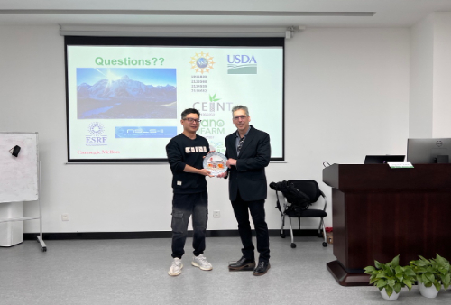 报告最后,李浩代表环境讲坛向Gregory V. Lowry赠送了精心准备的纪念品,以表达环院学子的感恩与祝福。讲坛结束后,Gregory V. Lowry参观了学院新大楼,并与团队成员亲切交流。
