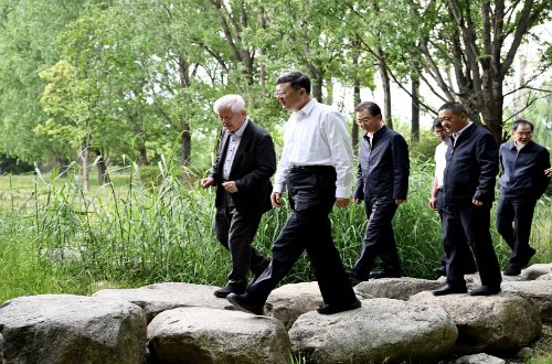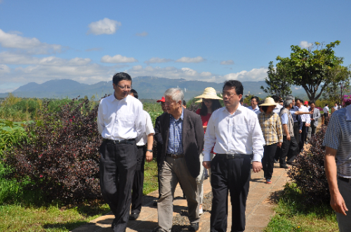代表团一行来到洱海生态廊道,孔海南教授和王欣泽研究员围绕团队参与洱海保护的工作历程,洱海水质及生态变化,下阶段即将开展的研究工作进行了汇报,陈吉宁书记重点询问了洱海演替的历史进程、洱海水质及生态现状,对a片漫画 长期持续开展洱海保护研究给予肯定,并指出高原湖泊具有独特的地理环境特征,应重点围绕水质标准、湖泊生态系统中的底栖指示性生物、水资源等方面进行科技攻关。