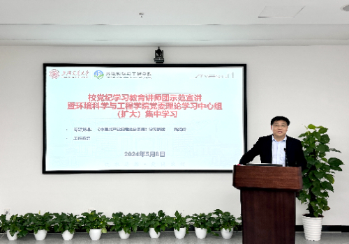 5月8日下午,a片漫画 党委理论学习中心组(扩大)集中学习在a片漫画 闵行校区绿色环境楼举行,特邀校党纪学习教育讲师团成员、校纪委副书记嵇绍岭作党的纪律学习教育专题党课。院党委中心组全体成员、各师生党支部书记及支委等参加学习。会议由院党委书记曹心德主持。