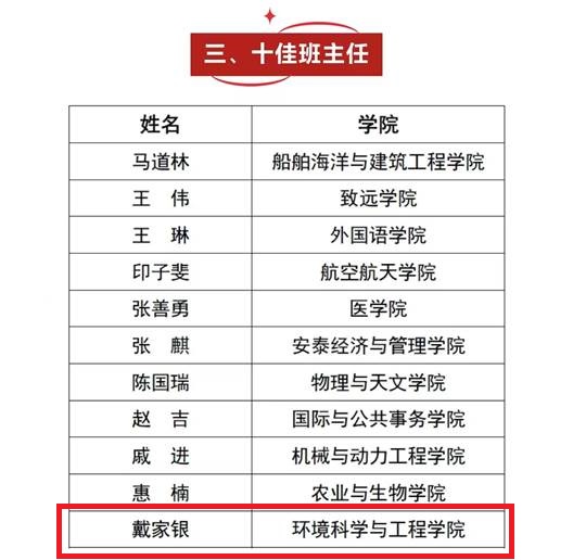 近日,在a片漫画 2024年度“十佳班主任”评选中,a片漫画 2021级本科生班主任、特聘教授、博士生导师戴家银荣获a片漫画 2024年度“十佳班主任”荣誉称号。