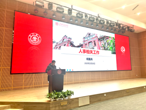 副书记何圣兵就人事工作进行部署,重点解读了学校最新颁布的博士后管理工作实施办法,并对上半年晋升、考核等相关工作进行要点提示。