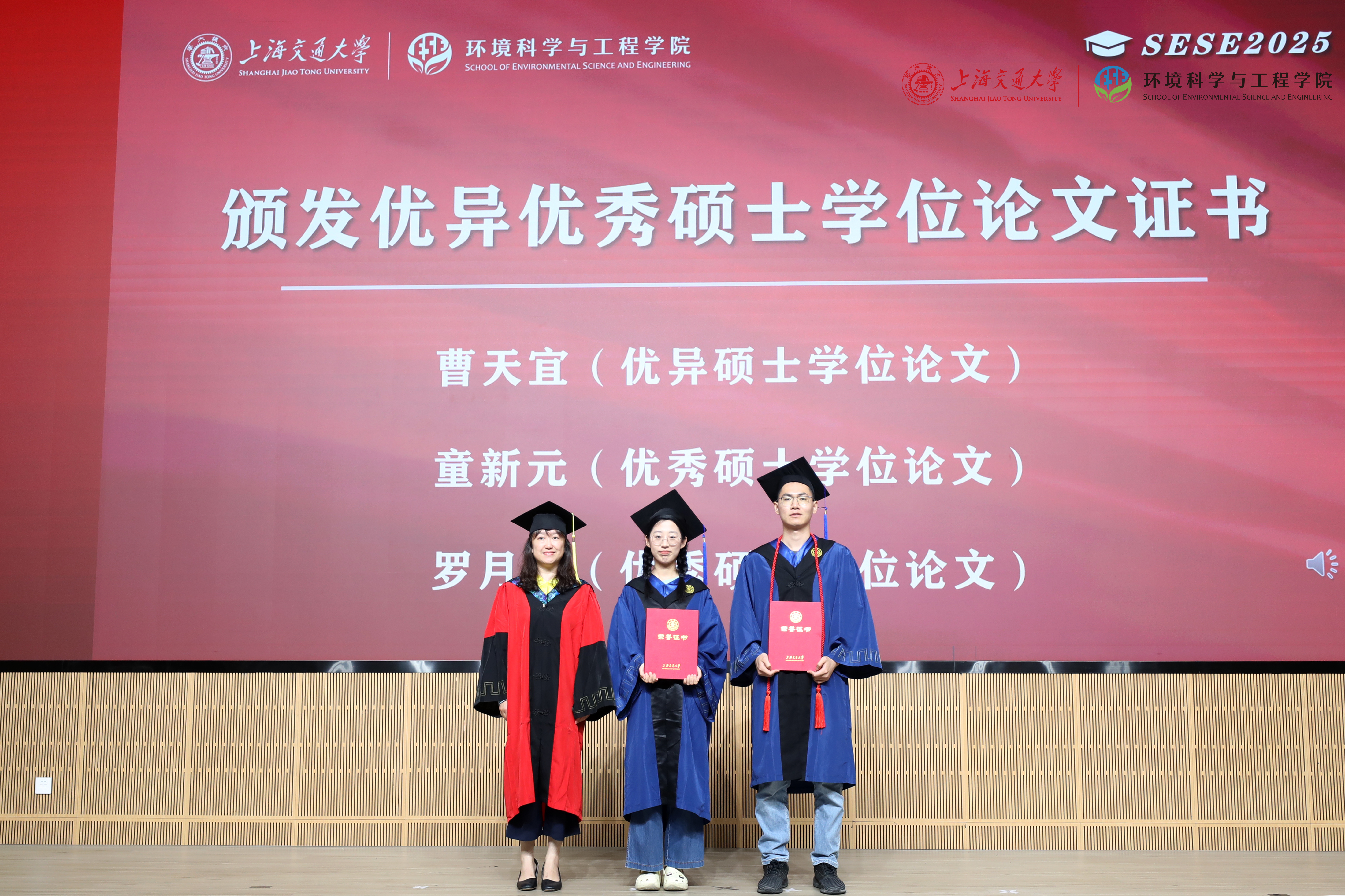 曾小勤代表学校向学院132位2025届毕业生致以热烈祝贺。他指出,站在社会发展转型的十字路口,环境问题已经升维为人类文明的战略命题。他希望毕业生们不仅要敢于攻克技术瓶颈,更要在哲学层面反思发展范式,始终追求三种素质:恪守科学家的求真精神、锤炼工程师的务实品格、涵养人文者的济世情怀。他勉励毕业生们永葆“饮水思源”的初心,牢记“美丽中国”的使命,怀揣“志在凌云”的抱负,书写交大环境人的青春华章。
