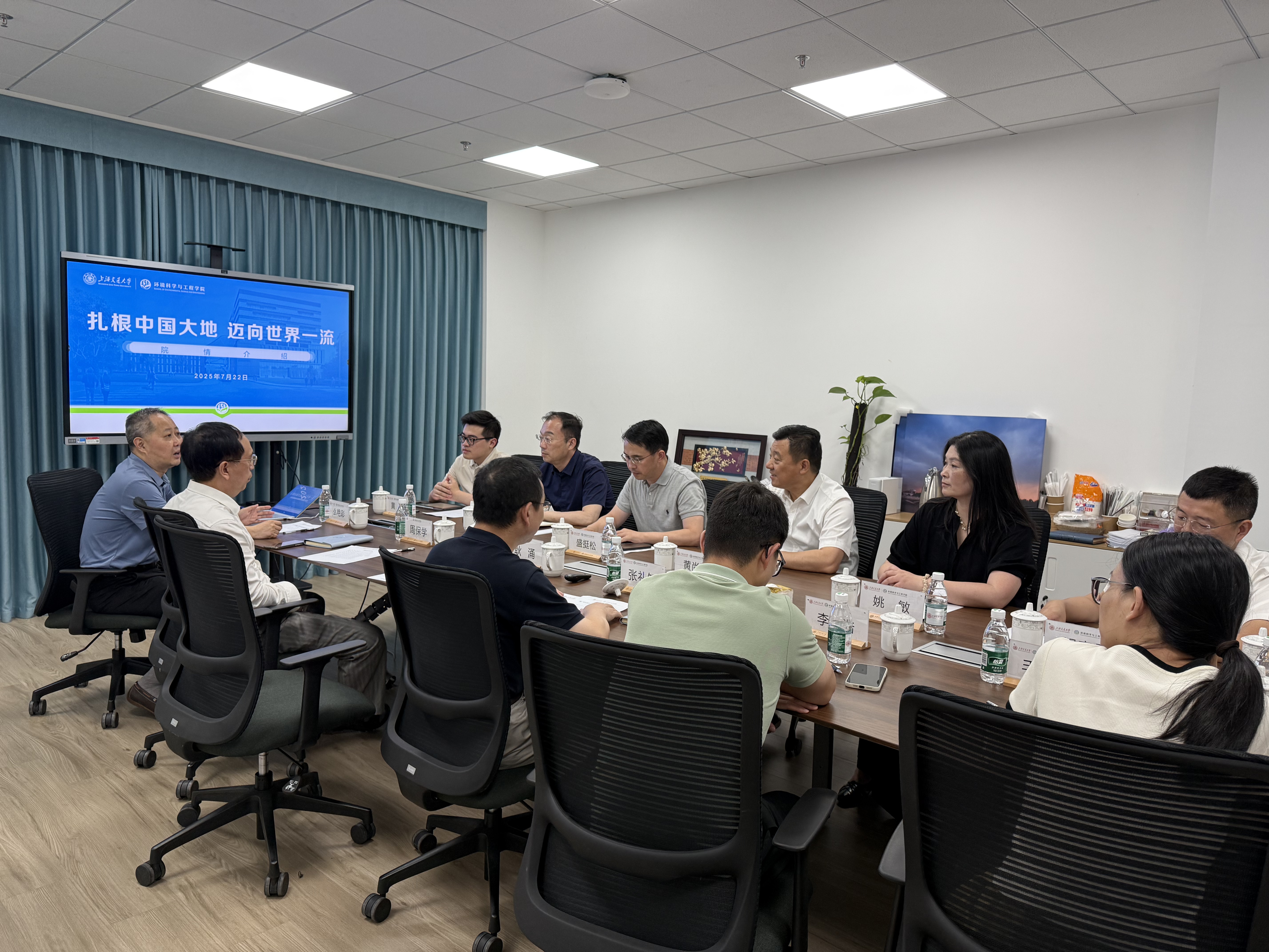 7月22日,鑫广再生资源(上海)有限公司董事长黄尚渭、总经理盛挺松、副总经理费文磊、总经理助理黄淇,金华市人民政府驻上海联络处金义新区工作部部长姚敏一行到访a片漫画 。a片漫画 院长耿涌、副院长张礼知,教师代表周保学、李浩、么艳彩、毛成梁等参加座谈。会议由张礼知主持。