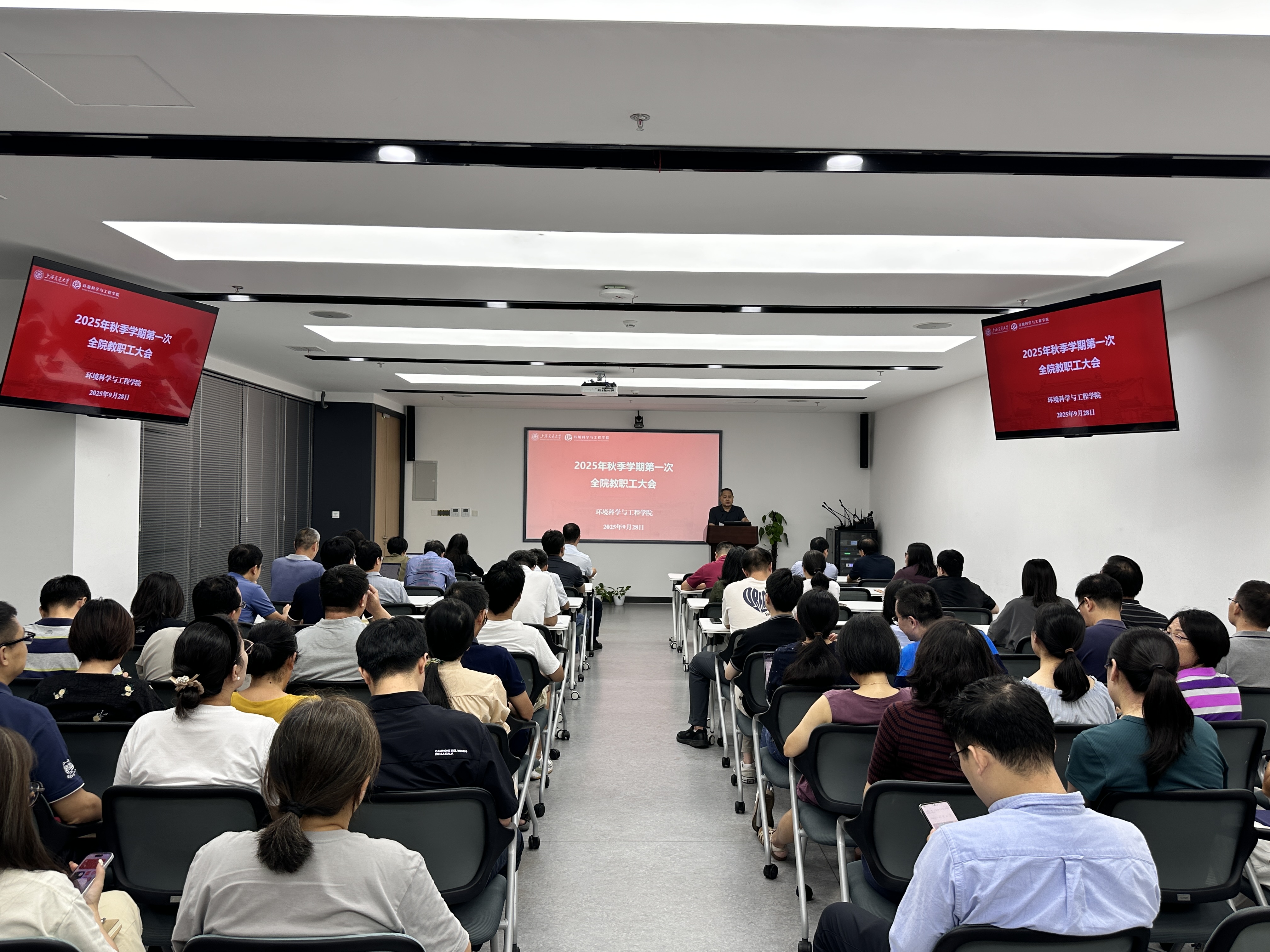 9月28日下午,a片漫画 2025年秋季学期第一次全体教职工大会在绿色环境楼231会议室举行。学院党政领导班子、全体教职工参会,会议由院长耿涌主持。
