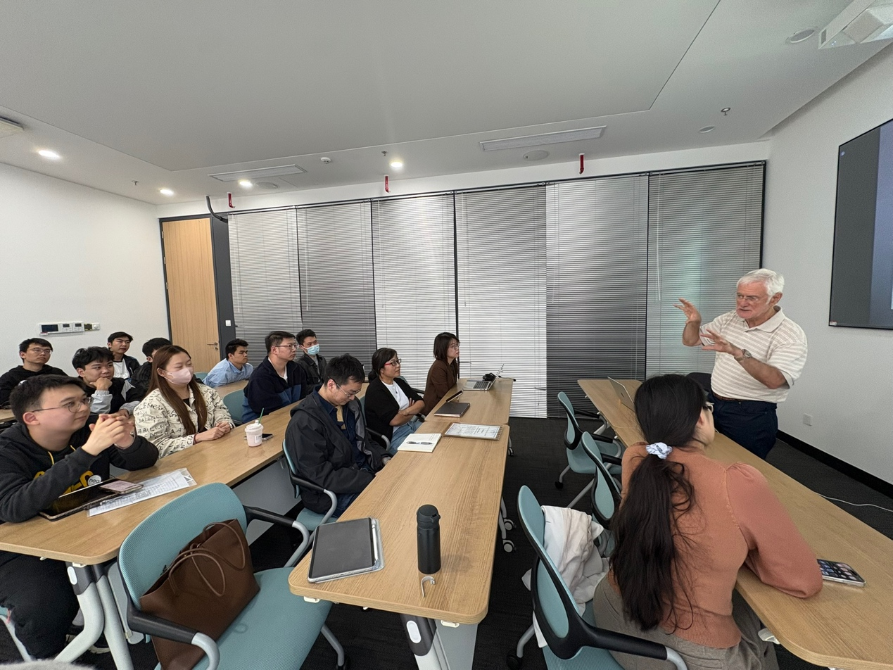 在交流环节,与会师生就“气候变化政策法规如何重塑全球分工体系”等问题与Grimes教授进行了深入探讨,氛围热烈。