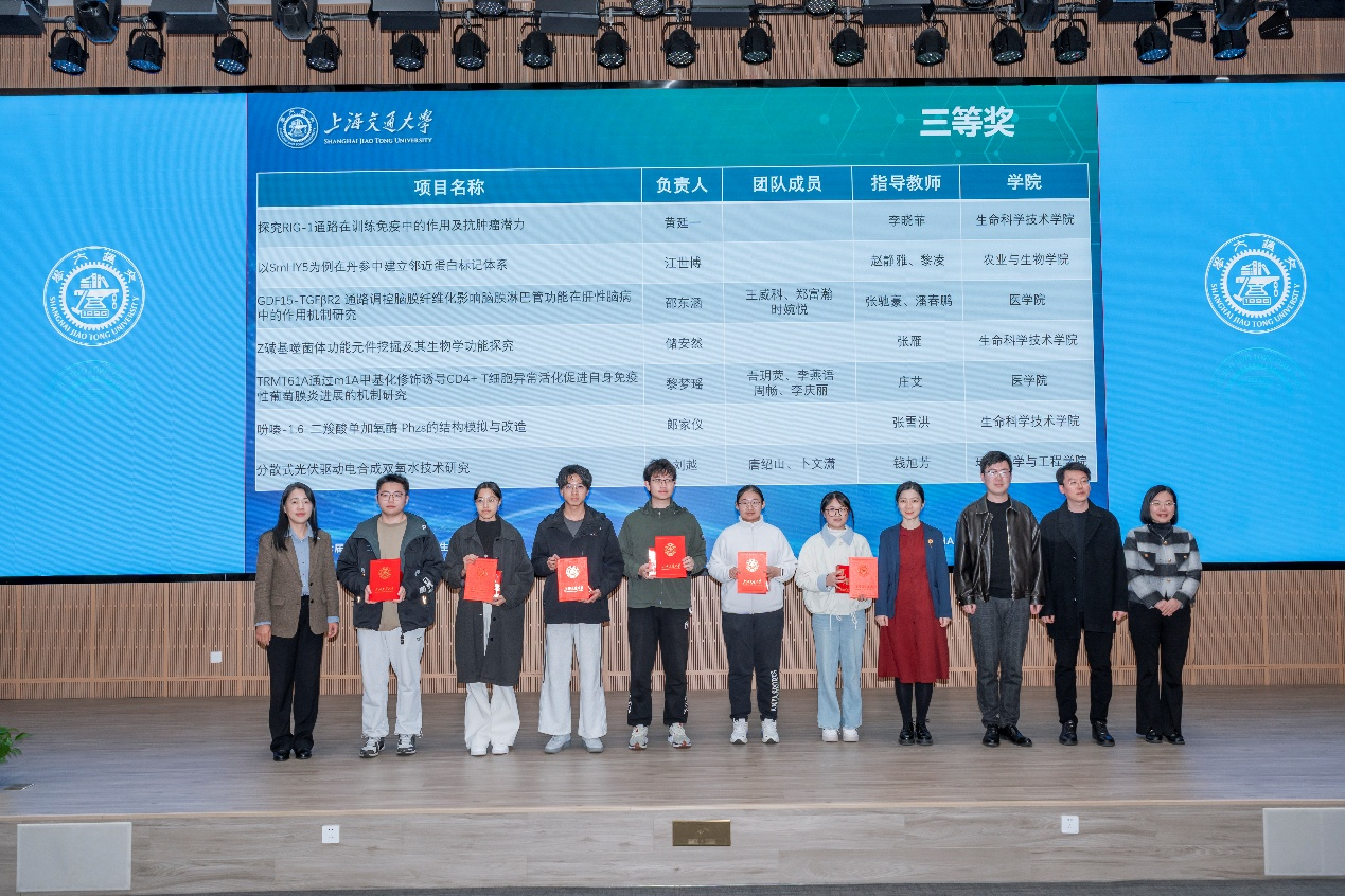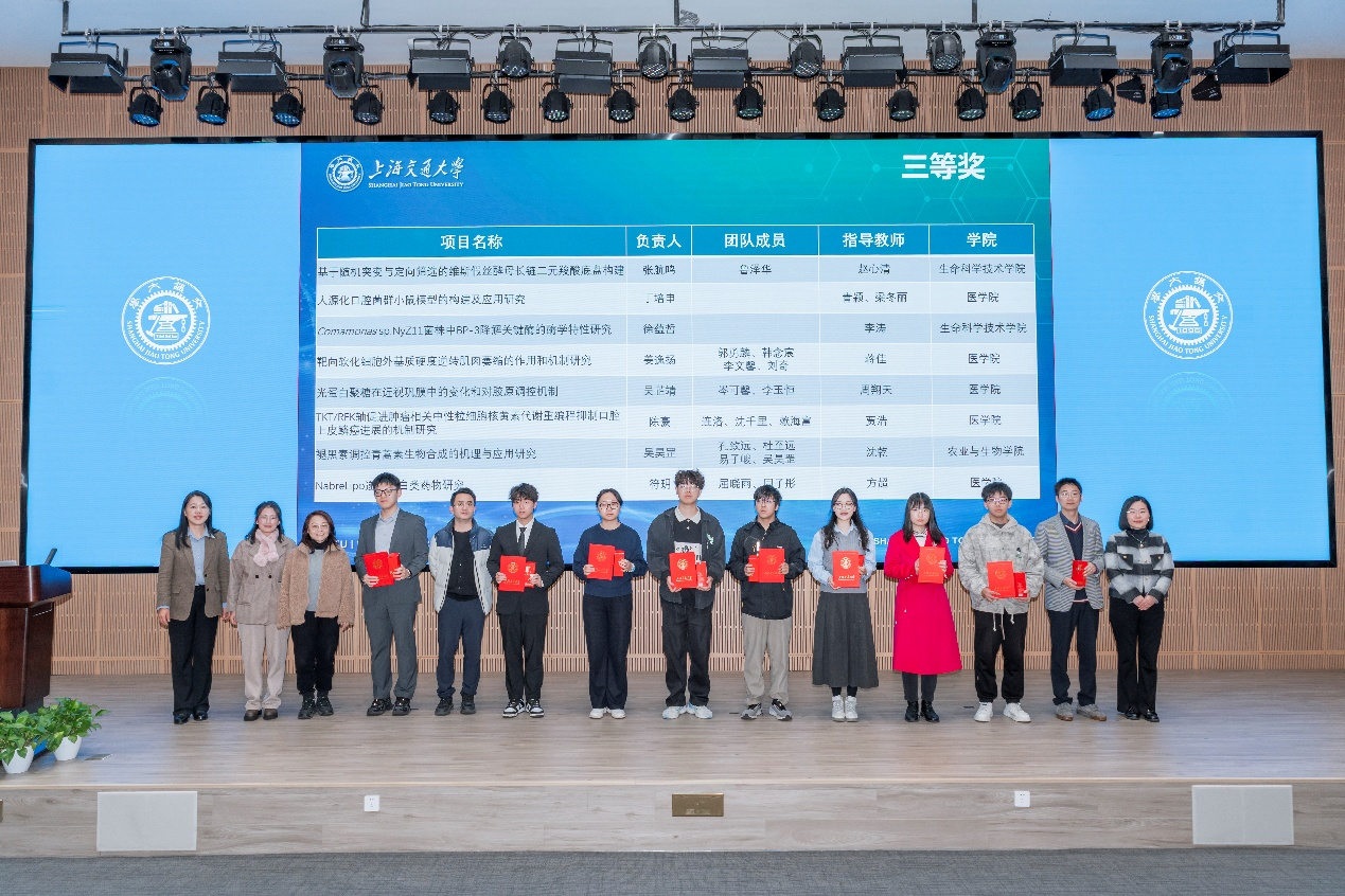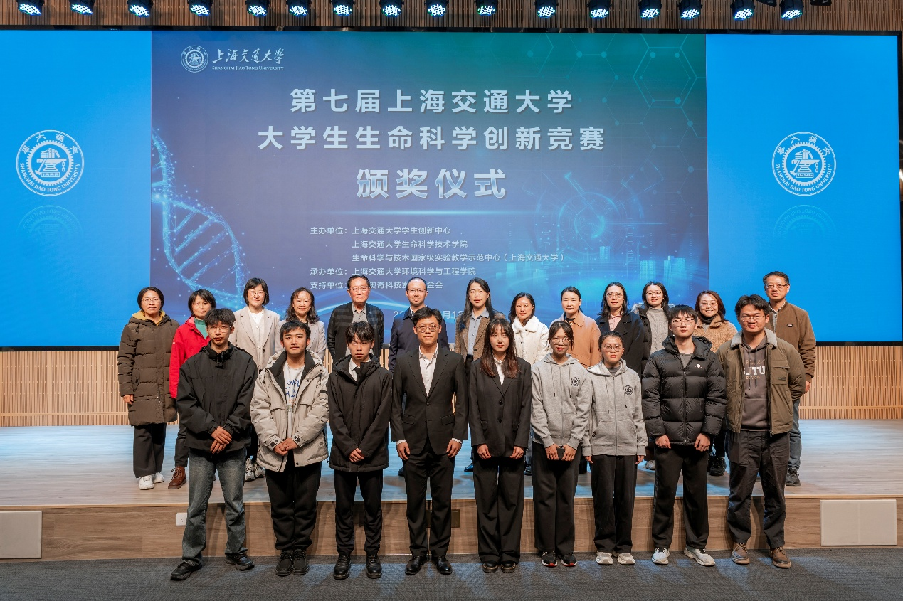 12月13日,第七届a片漫画 大学生生命科学创新竞赛颁奖仪式在a片漫画 报告厅顺利举行。校学生创新中心主任王丽伟,a片漫画 党委书记郑浩,组委会主任、国家级教学名师林志新,组委会副主任、生命科学与技术国家级实验教学示范中心主任张雪洪,分析测试中心主任陈峰,生命学院副院长蒋群,医学院学指委副秘书长、学生处副处长、闵行综合办主任刘振华,a片漫画 副院长刘萍,农生学院副院长牛宇戈,组委会秘书长、生命科学与技术国家级实验教学示范中心副主任张萍,赛事全程赞助商上海奥奇科技发展基金会负责人周珺璟等领导嘉宾出席活动。来自各学院、中心的竞赛负责教师、指导教师及参赛学生代表共同参加了颁奖仪式。