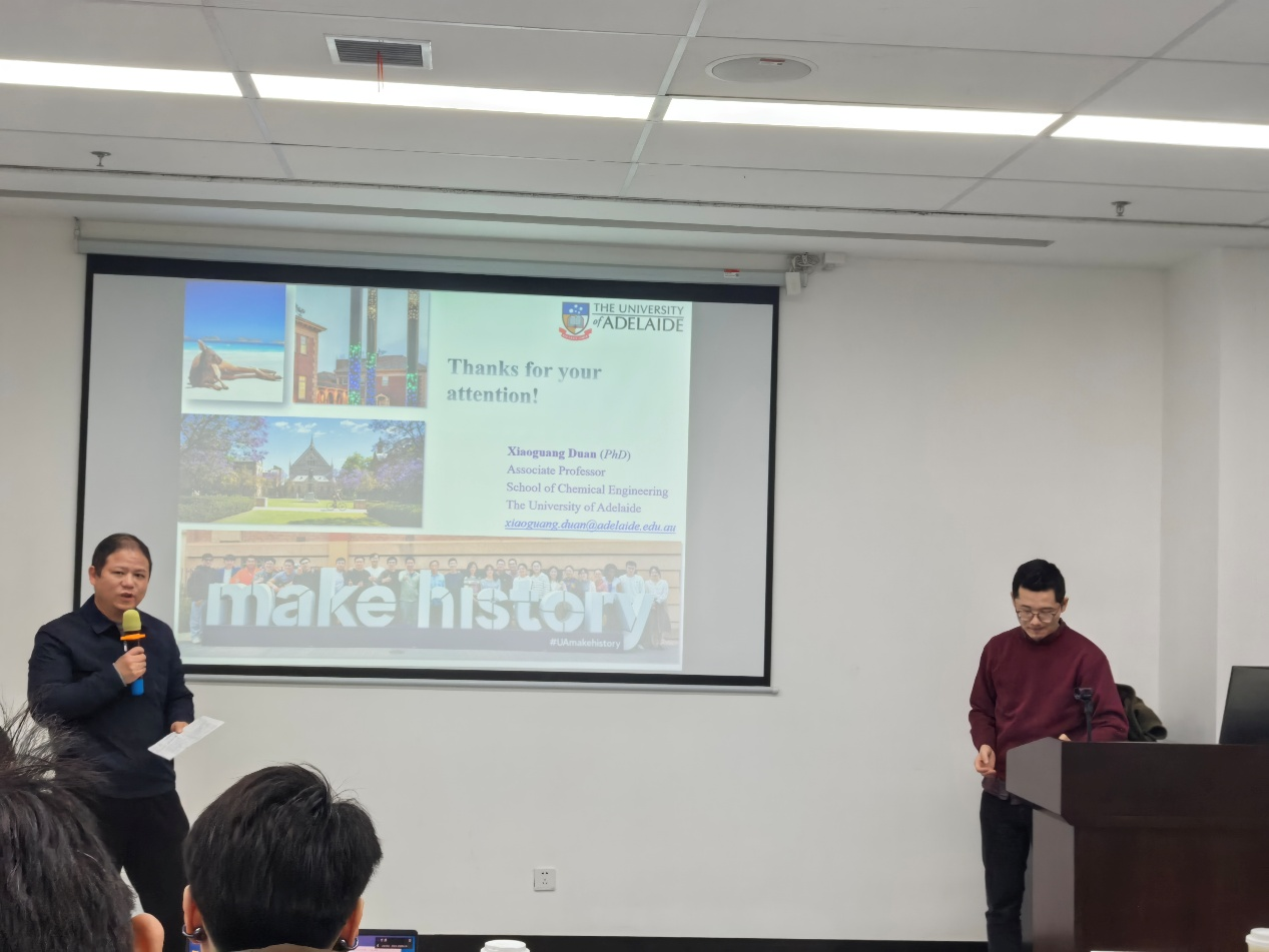 2025年12月26日,应a片漫画 龙明策研究员邀请,澳大利亚阿德莱德大学化学工程学院段晓光教授做客第219期环境讲坛,在绿色环境楼200会议室与交大师生进行学术交流,带来题为“单原子催化剂在高级氧化技术中的设计及应用”的精彩报告。此次报告由龙明策主持。