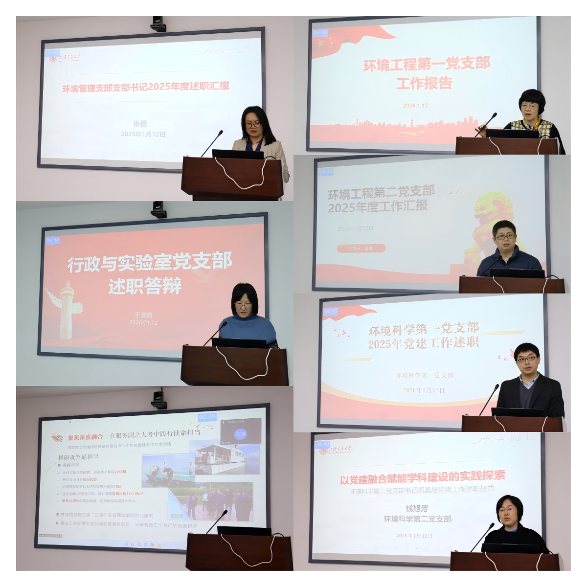 许艳作交流点评。她充分肯定了学院师生党支部在抓基层、打基础、强功能方面取得的扎实成效,特别是在特色工作探索上,各支部能够紧密结合学科特点和师生需求,创新活动载体,丰富工作内涵,真正做到了“规定动作不走样,自选动作有特色”。她勉励各支部进一步激发组织活力,凝练优秀经验,打造更多具有环境学科特色的党建品牌。