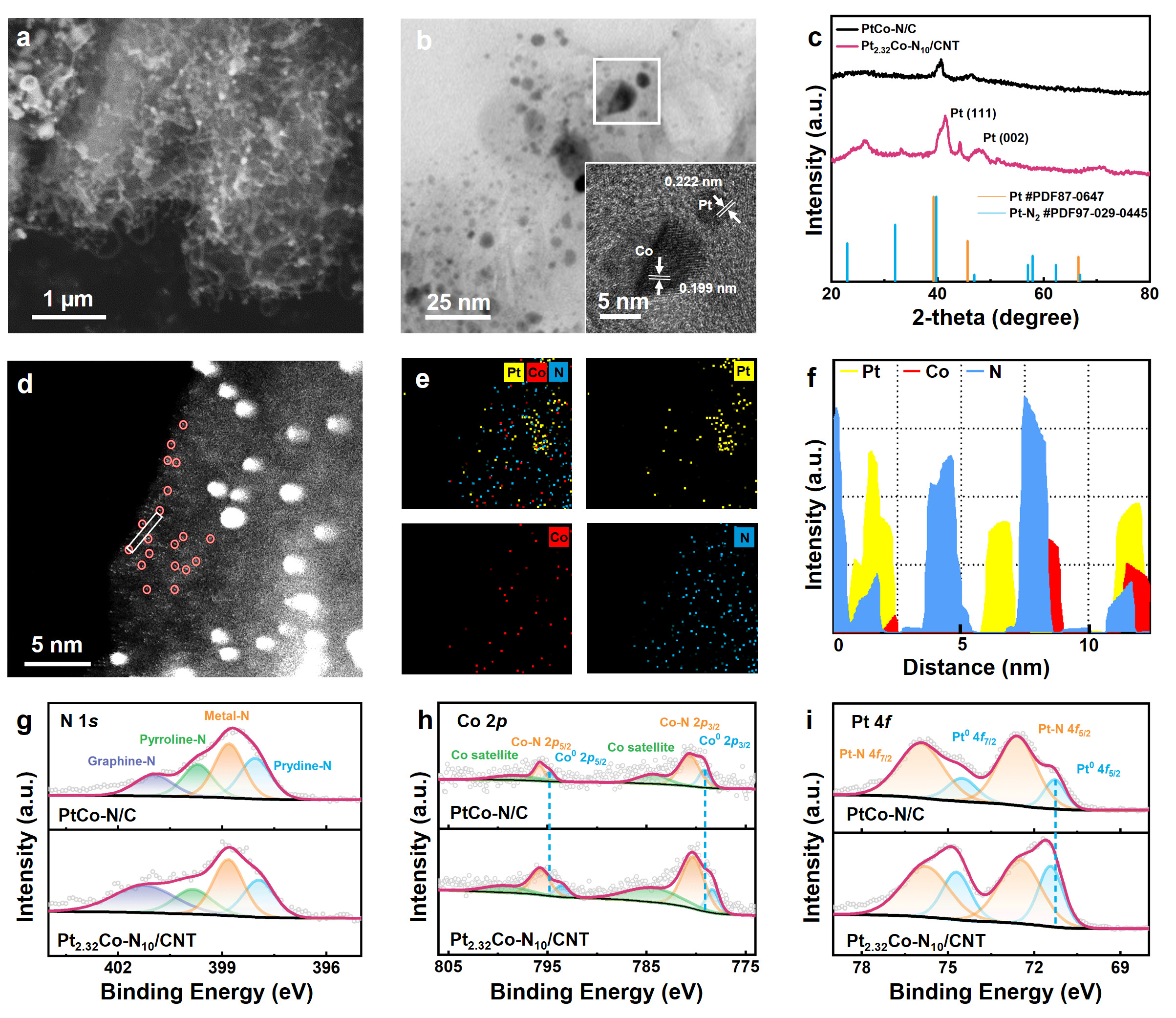 图2 Pt2.32Co-N10/CNT电催化剂的结构表征