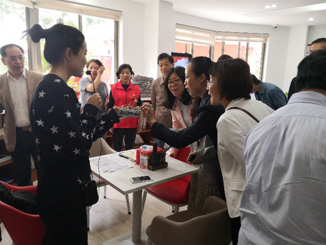 紧接着,讲解员又带着师生们参观了二楼 “一室一馆一苑”——香樟书记工作室、党性修养馆、聚心苑,知晓了江川党性教育培训的平台以及以“创新创业”为主题的江川特色党课。最后,师生们参观了“三坊”——共治议事坊、组织生活坊、党群益家坊,了解了江川路街道区域党建活动、组织生活、居民区团队党建项目活动等。