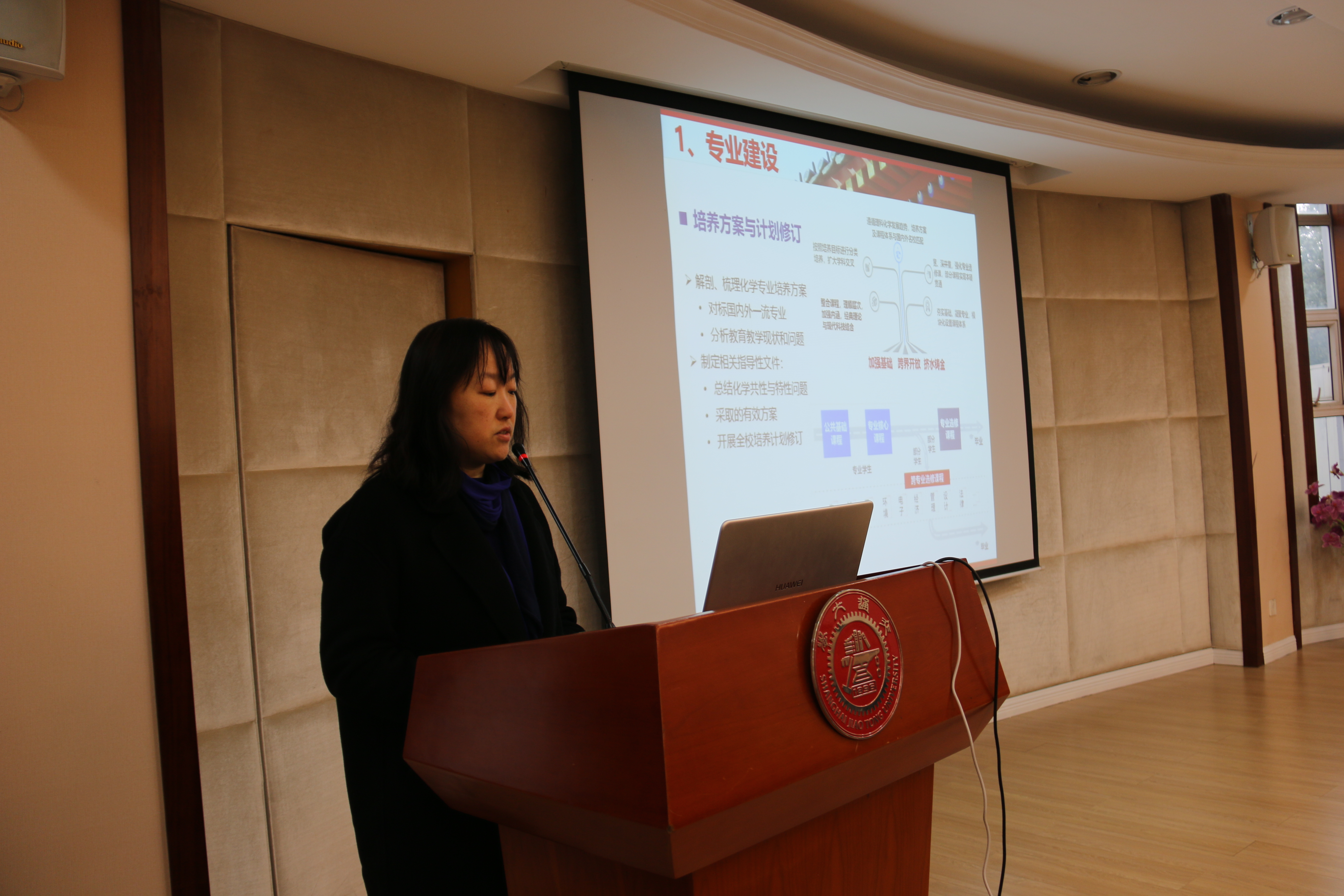 副院长刘萍从专业建设、课程建设、质量建设、部门联动、研究生培养五方面向与会教职工传达和解读了2019年度学校教学工作及相关政策。