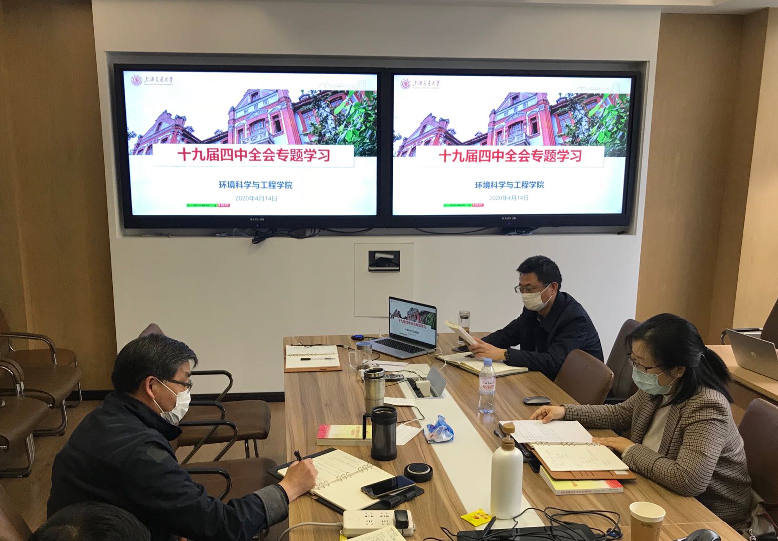 领导班子成员在环境楼212会议室召开十九届四中全会精神专题学习会议。副院长许振明、曹心德、刘萍,副书记陈哲、工会主席何圣兵、院长助理李亚红、赵一新等参加了会议,会议由学院党委书记胡薇薇主持。
