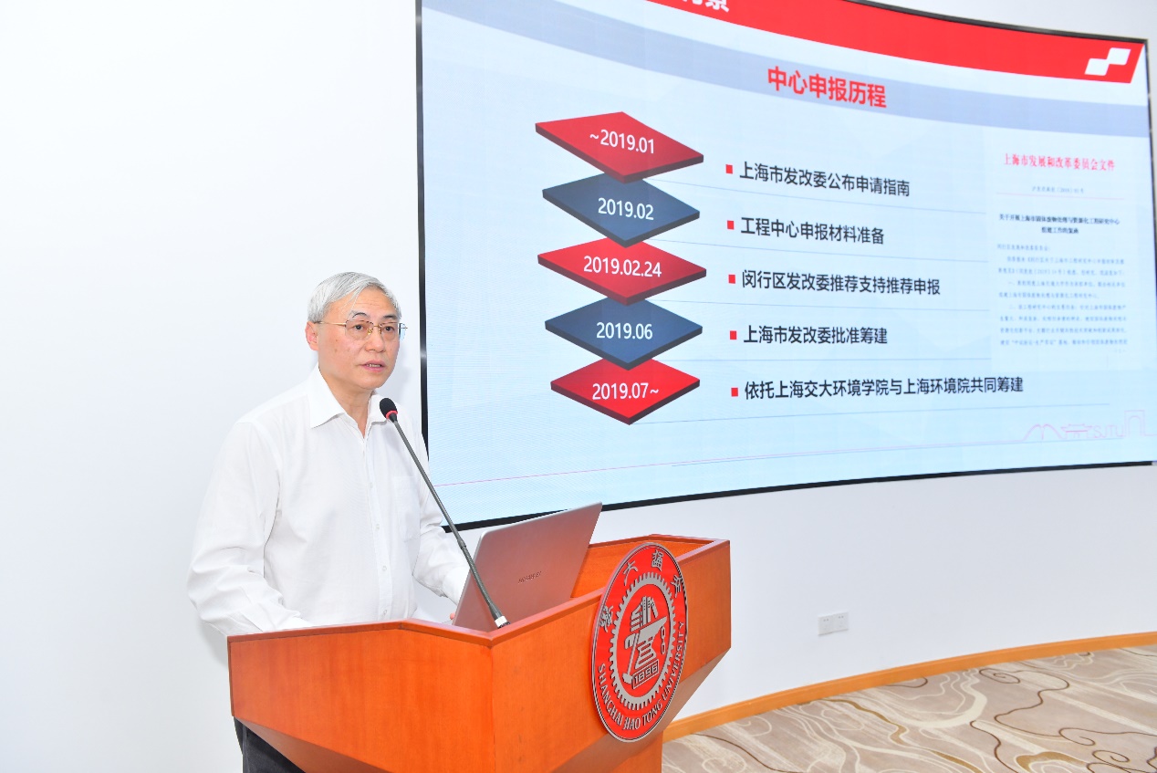 吴旦代表中心筹建组做“上海市固体废物处理与资源化工程研究中心”筹建情况报告。他从中心建设的背景、建设目标与任务、建设方向与人才队伍、硬件资源配置、管理与运行机制等方面,对中心基本情况作了介绍。