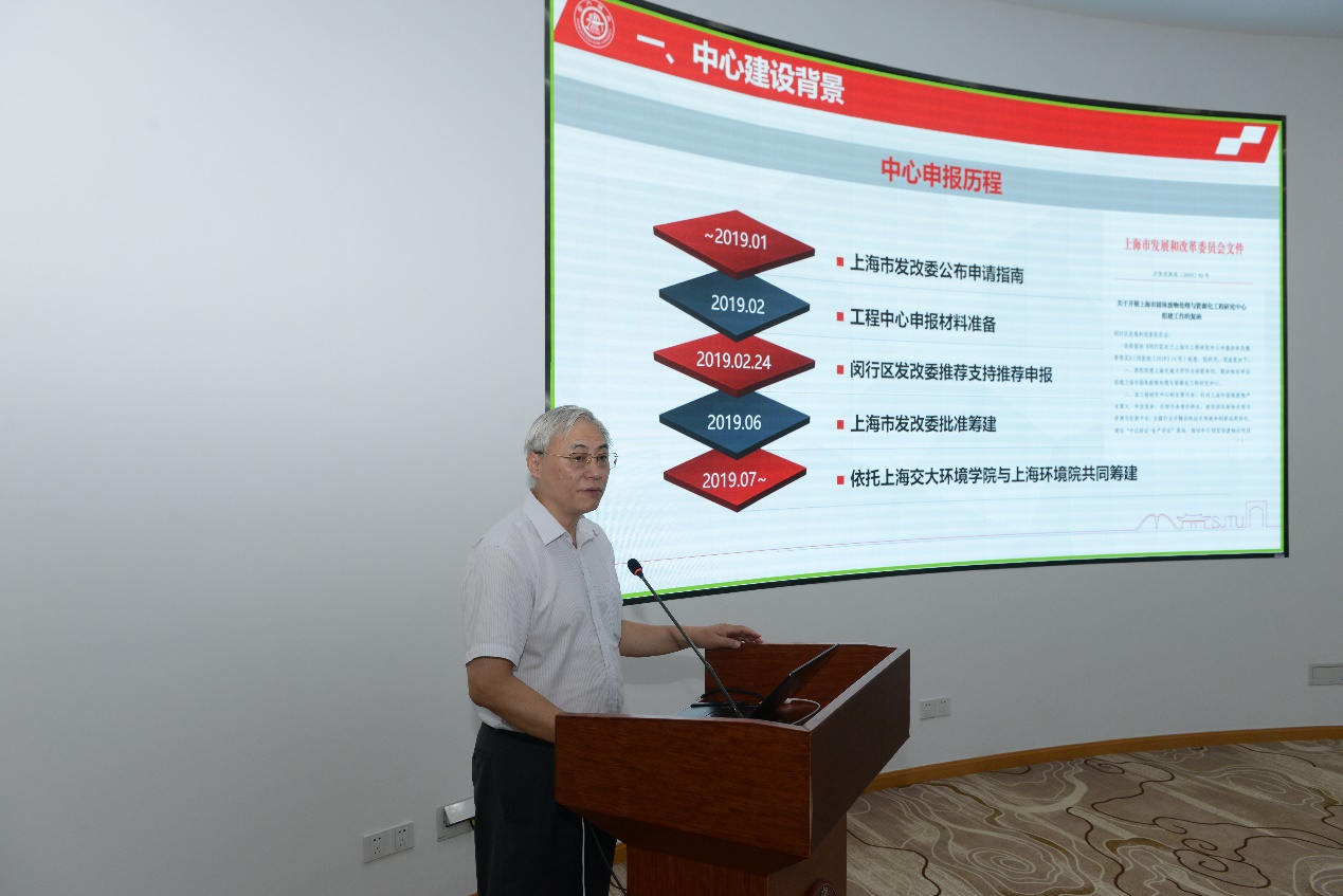 吴旦代表中心做“上海市固体废物处理与资源化工程研究中心筹建情况”报告,向与会专家介绍了中心筹建的历程,以及目前中心的目标任务、研发队伍和组织架构等。