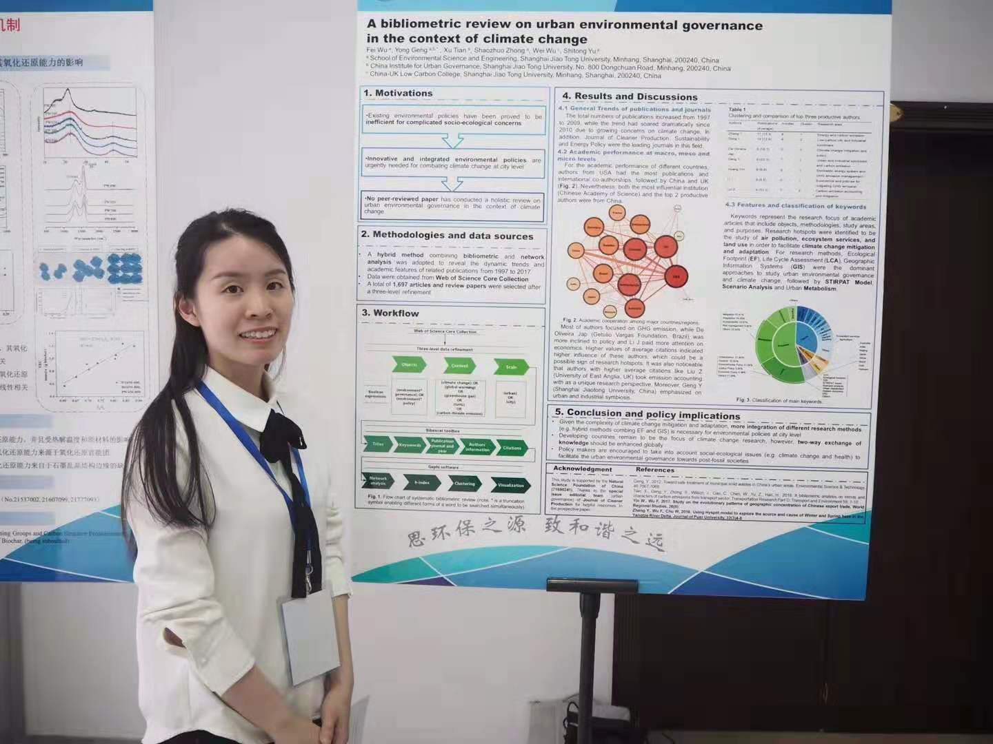 首先,地理学本科出身的我,在环境工程学的硕士项目中,做着环境经济与管理学的研究。正是这理、工、文学科的交叉融合,塑造了我独特的研究生学习和科研生活。入学以来,除了在a片漫画 开设的专业课中获得优良的成绩,我也积极选修了安泰经济与管理学院和国际事务与公共政策学院的相关课程。虽然往返徐汇与闵行校区两地的路程遥远又辛苦,但我非常享受和经济、公共政策老师的跨学科交流,在这两门全英文课程中分别获得A与A+的好成绩。此外,我的科研成果也非常丰富。截至2020年2月,我在研究生不到三年的时间内一共参与发表了七篇同行评审的文章。其中,第一作者的SCI文章两篇(发表于Journal of Clean Production,中科院一区)、第二作者(本科导师一作)的中文核心文章一篇。