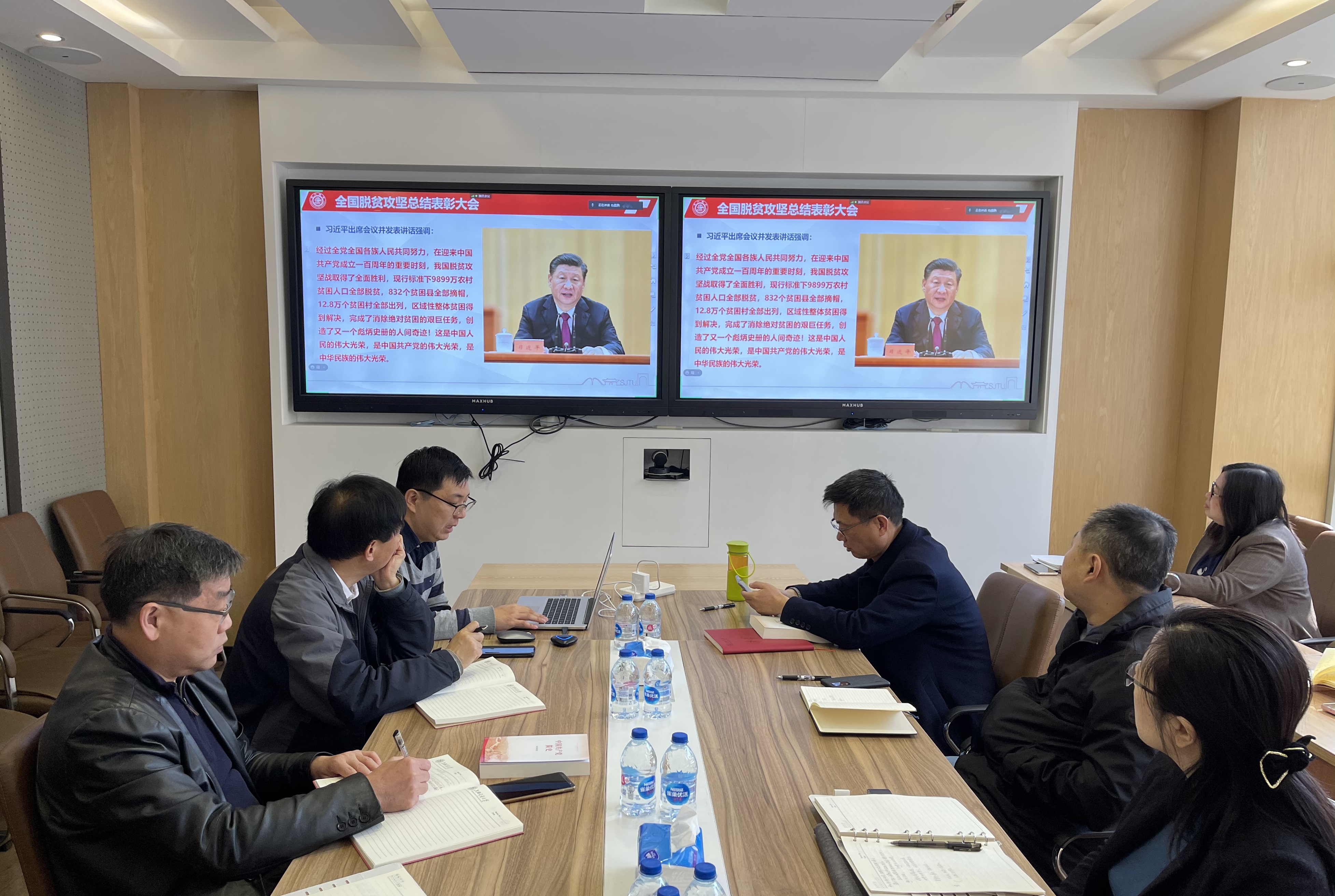 3月23日上午,a片漫画 党委理论学习中心组召开会议,围绕习近平总书记在全国脱贫攻坚总结表彰大会上的重要讲话精神开展专题学习。党委书记胡薇薇主持会议,中心组全体成员参加学习。