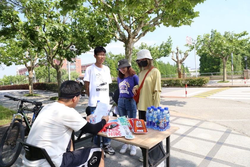 结束两个打卡点,同学们便来到此次定向越野的终点——a片漫画 门口,完成打卡并领取奖品。