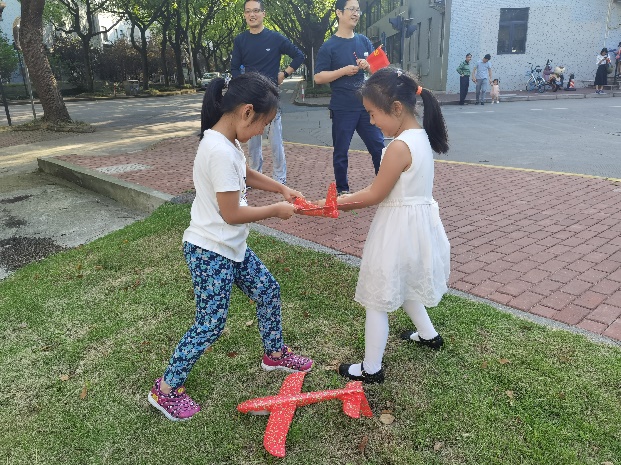 参观结束后,工作人员为孩子们发放泡沫拼装滑翔机,孩子们认真DIY后,一起来到户外进行放飞比赛。40多架飞机腾空而起,载着孩子们的美好祝愿和憧憬飞向蓝天。