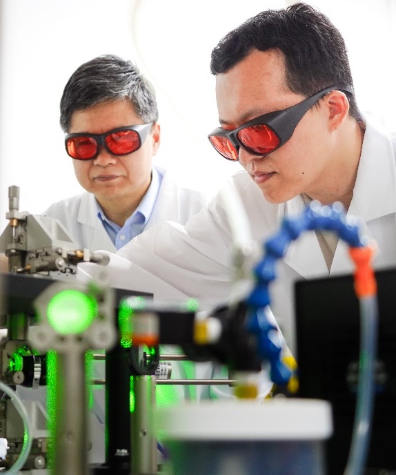 图1:肖化云(左)与李晨曦(右)在进行光路调节。