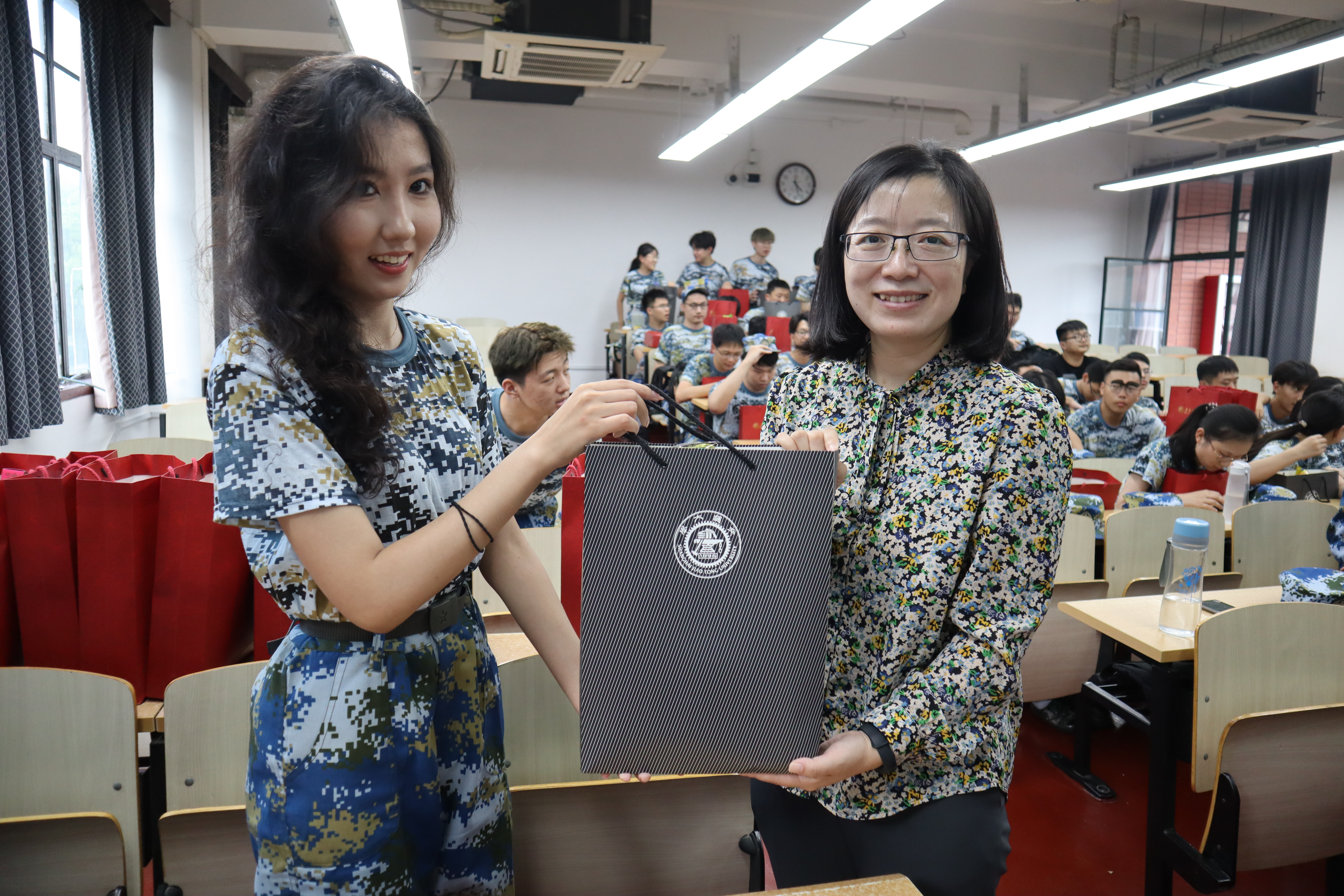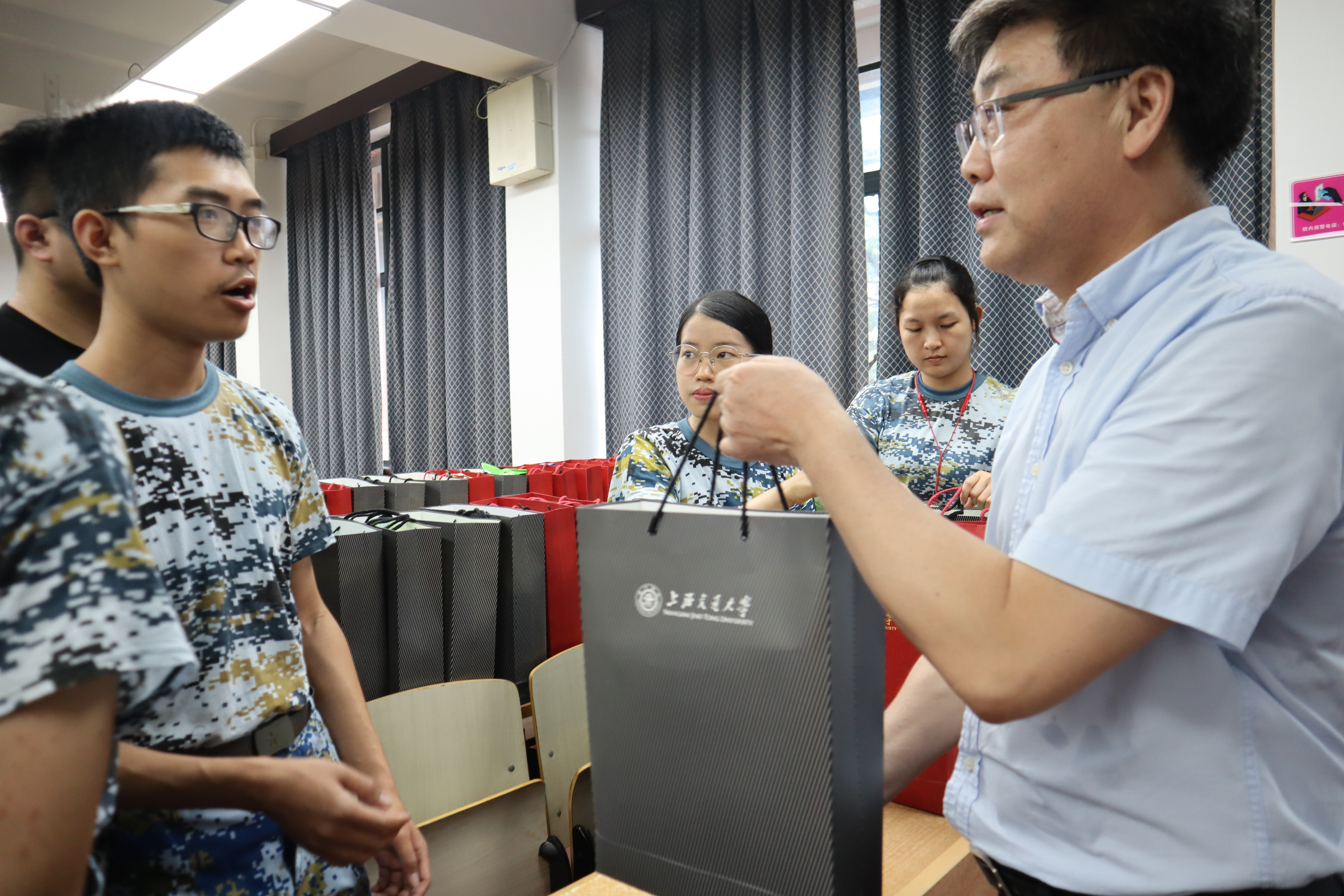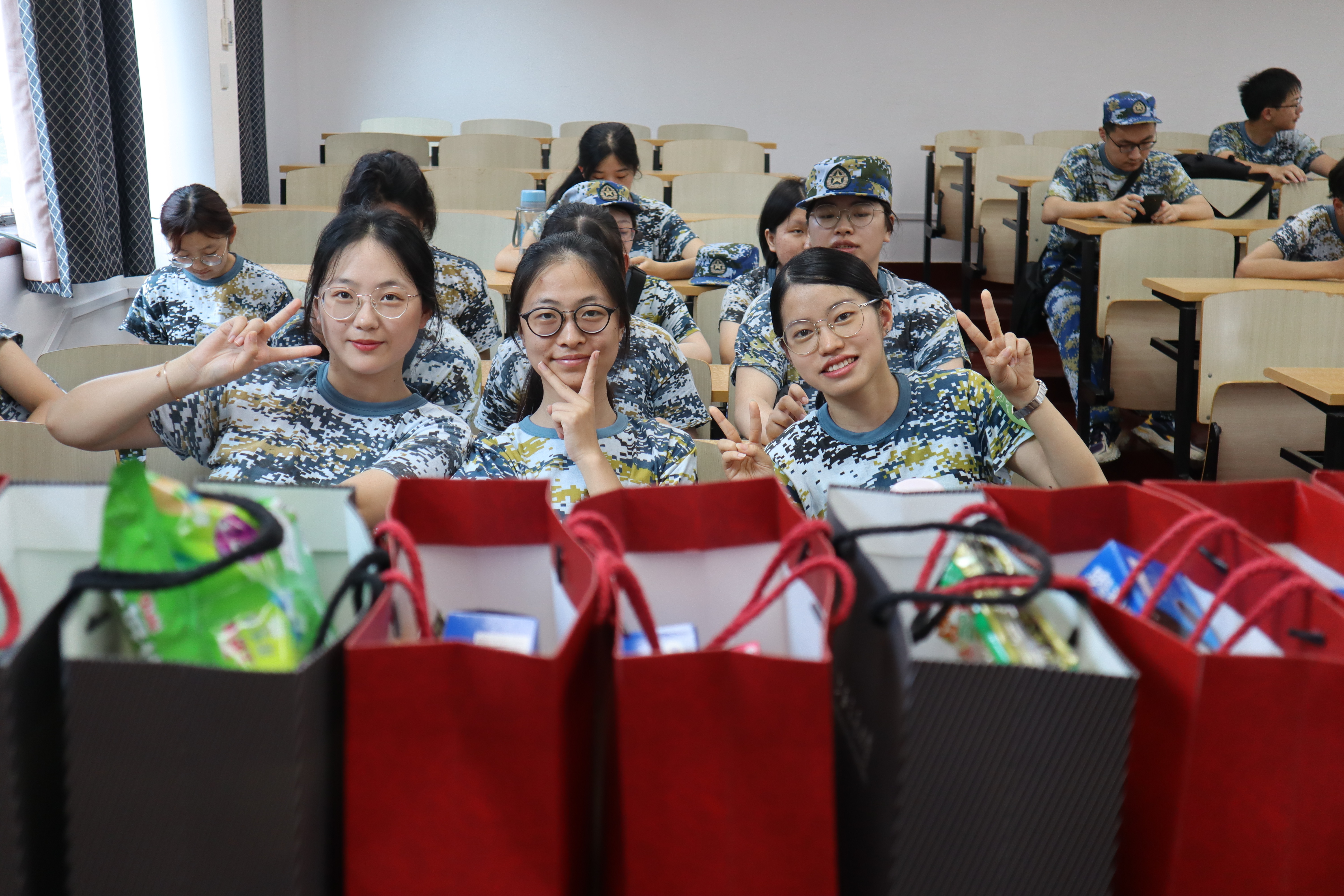 最后,学院领导向同学们赠送了丰富的慰问品,同学们用热烈的掌声表示了感谢。