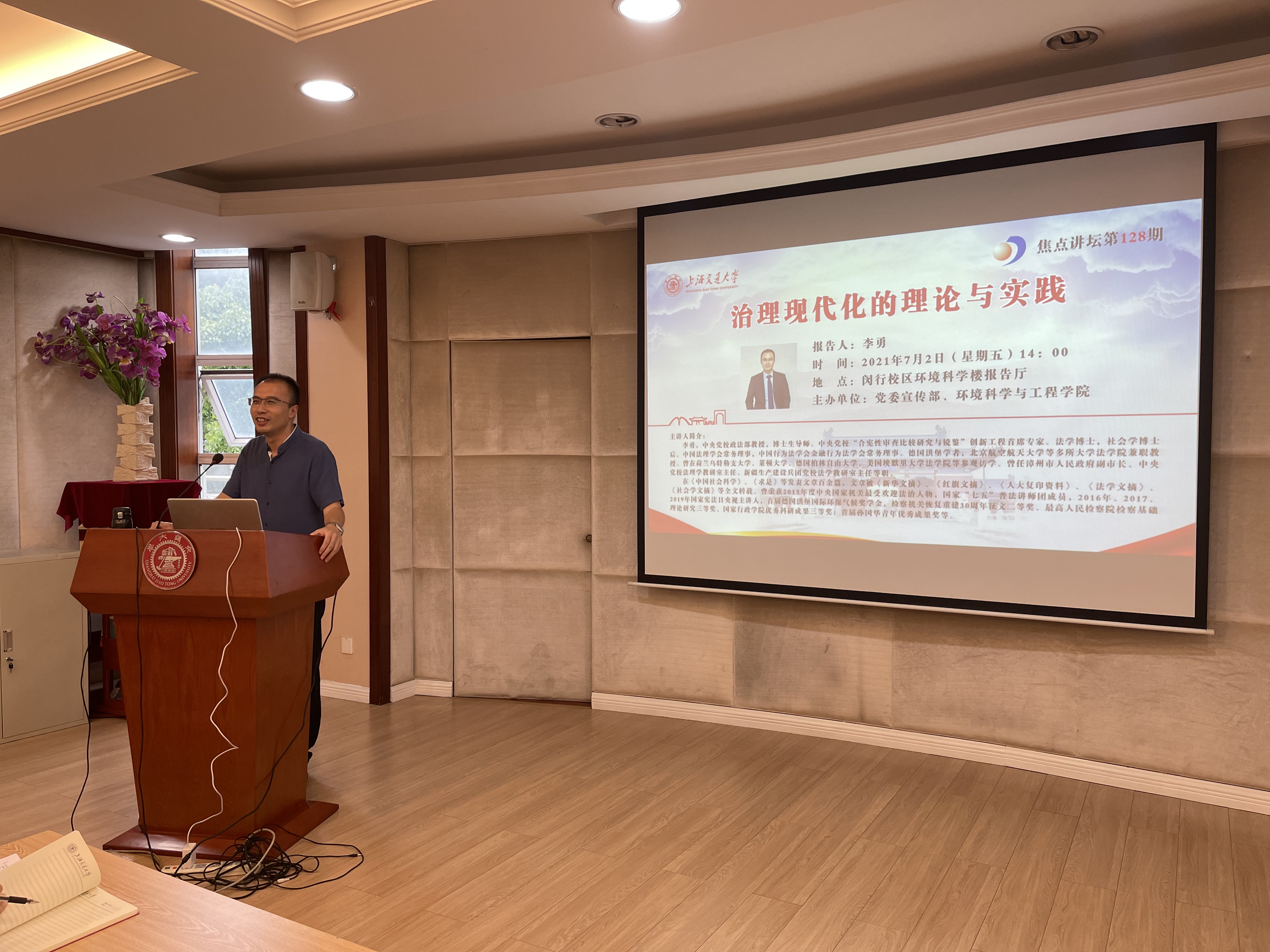 李勇教授由习近平新时代治国理政基本理念出发,从治理体系和治理能力现代化的内涵、时代变迁的历史总结、百年变局的现实需要、中国梦实现的必然要求以及如何实现治理体系现代化等方面,通过多个生动案例,系统介绍了法制思维及法治能力重要性以及具体实现路径,既生动讲解了习近平法治思想的精髓,也让与会师生了解了社会科学领域的前沿研究方法。