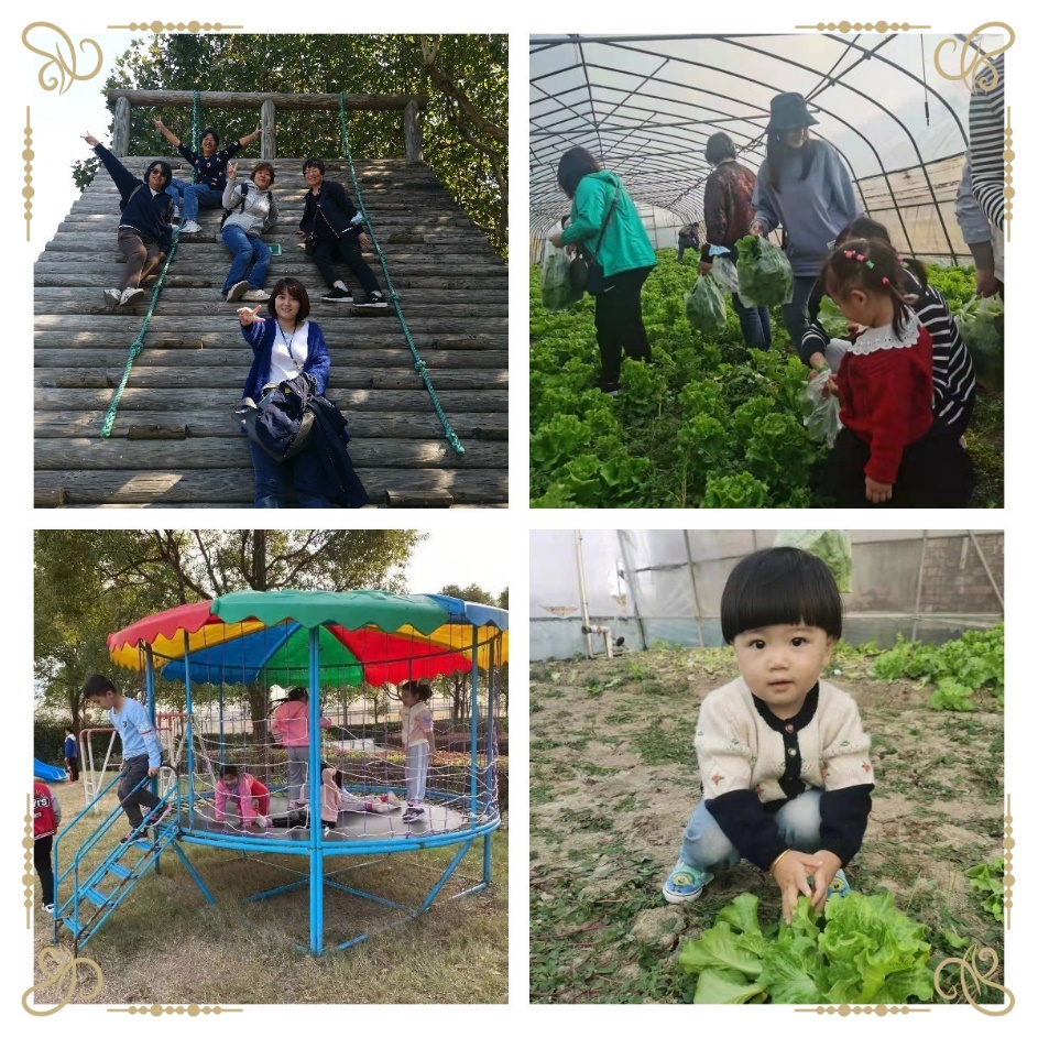 在中午品尝了朱家角古镇特色农家菜肴后,大家乘车来到了青浦蔬菜基地,一同参观了不同品种蔬菜种植、施肥、养护以及采摘过程,亲自体验了生菜和鸡毛菜的采摘过程。基地工作人员还组织小朋友开展了精彩的游戏活动。