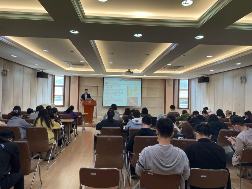 上海交大实验室安全与环保中心综合事务办公室何征为新进师生做化学品安全管理培训。他以近几年发生的重大安全事故开题,针对各类化学品的危险危害性、操作注意事项、实验室日常防护及危险废物的处置方法等进行了全面的讲解。
