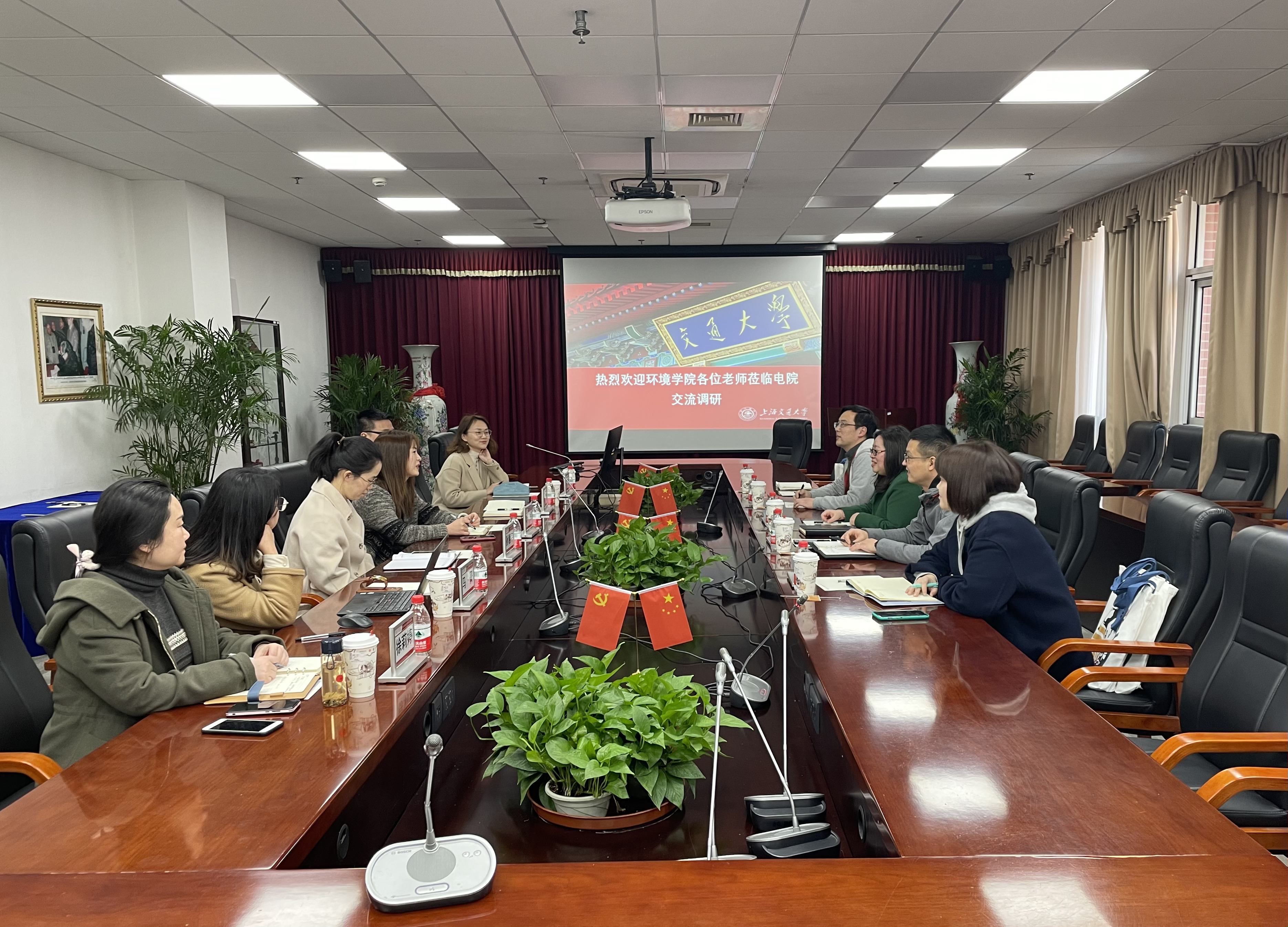 3月3日下午,a片漫画 党政办公室主任王欣荣率办公室成员前往电子信息与电气工程学院进行交流调研。电院行政管理服务中心主任叶琛及相关部门负责同志热情接待。