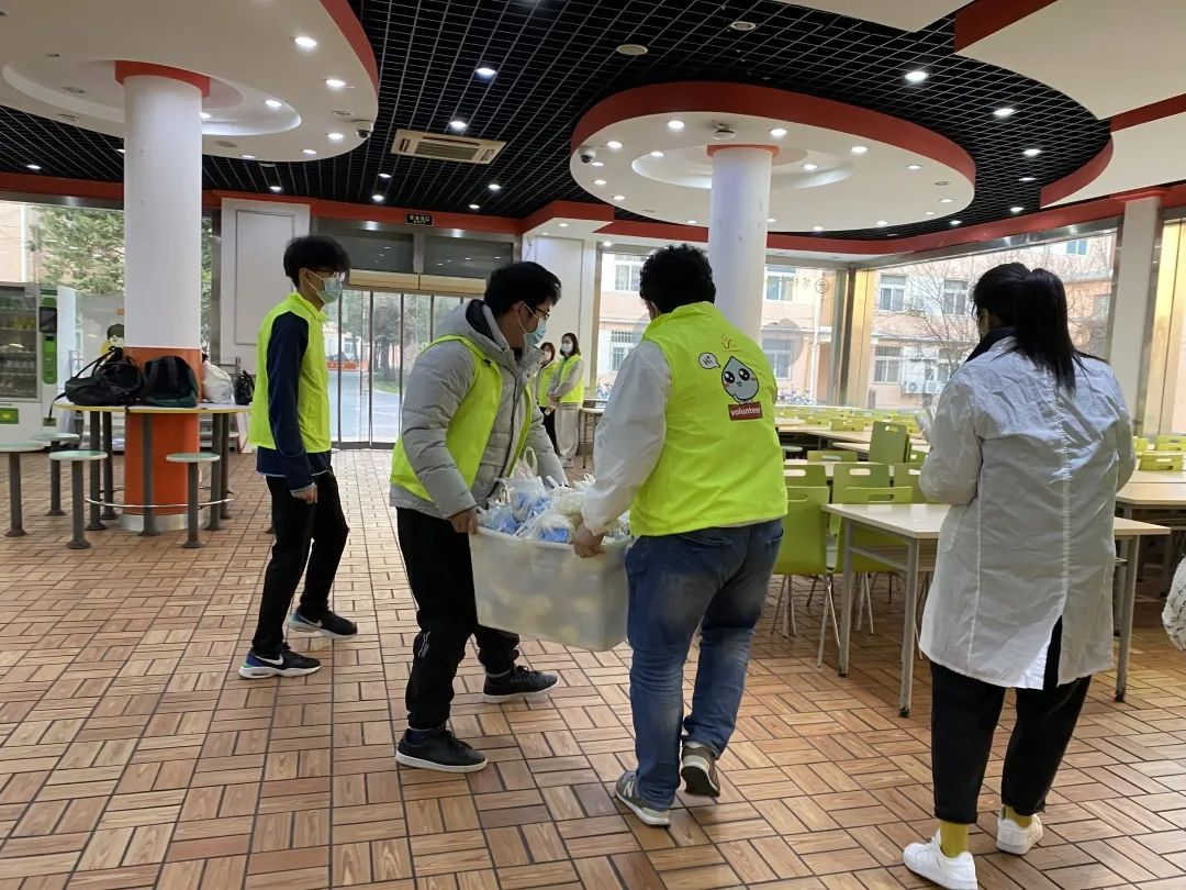 校园闭环管理以来,20级硕士生党支部积极响应号召,支部党员与积极分子以四餐为阵地成立后勤保障组,负责维持就餐师生有序排队,引导师生避免堂食,协助餐厅工作人员加快备餐速度,并为其他点位的志愿者提供餐食保障。支援后勤一线的环境人们坚守岗位、全力投入疫情防控工作,用行动诠释了他们是最可爱的守护者!