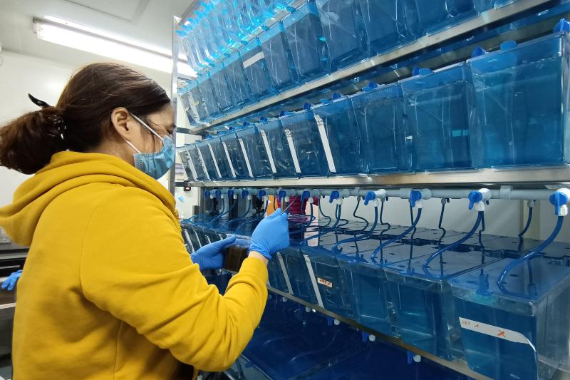 平时,这些“宝贝”每天由团队的研究生负责照料。疫情来临,学生按照规定足不出户。赵老师又在校外,鱼儿们的情况让他很是担忧。经过学院协调,物业阿姨承担下了这份工作。赵老师精心制作了饲养指导视频,物业阿姨快速掌握。现在这群鱼儿每天两顿饭,吃得饱、吃得好,欢乐地等着赵老师和同学们归来。