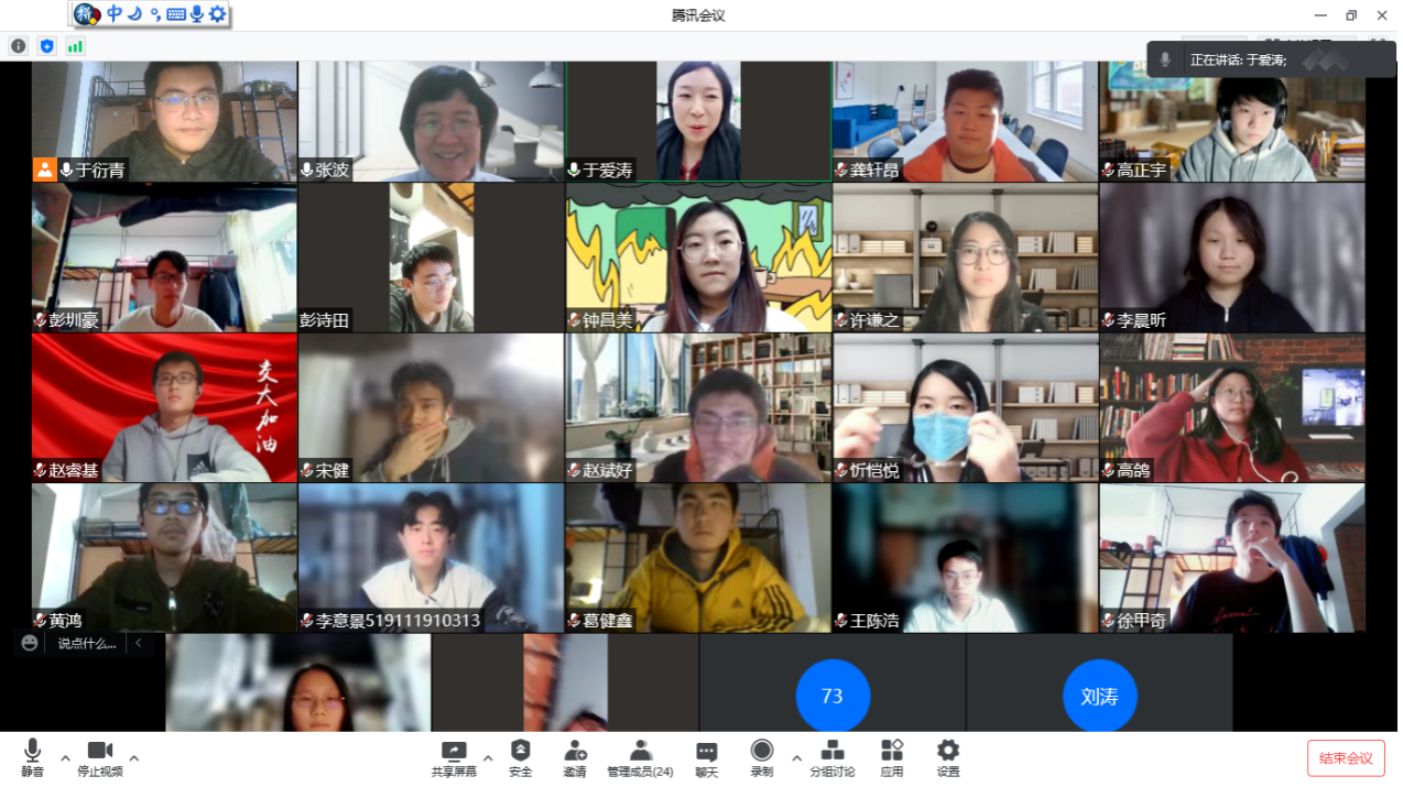 人的一生中都会经历很多或大或小的考验,如能乐观正视,将他们视为对自己的历练,那么若干年以后,当你们回望这段疫情封控的经历,你们一定能体会到别样的收获。主动规划、独立思考、自主学习,不断提高自己的专业水平和技能,是一个人抗击风险的最大能力。同学们,作为你们的班主任,作为你们的导师,作为你们的大姐姐,我相信能把握住这段时光的你们,定能在今后面对风险时更加淡定从容,也一定能把握好自己未来的人生。