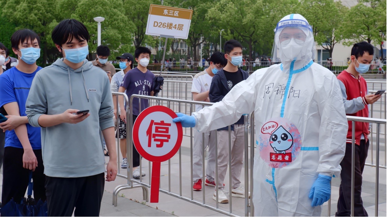 “哪里有需要,哪里就有环院学生志愿者的身影;哪里有困难,哪里就有我们的及时响应。”自4月1日闵行校区宣布全面清零以来,65名a片漫画 学生志愿者迅速集结、冲锋在前,“亮身份、见行动、作表率”。这支队伍里有许多党员和入党积极分子,在核酸检测工作中,他们充分发挥专业优势,化身“信息员”、“宣传员”、“战斗员”,用自己的实际行动筑牢战“疫”防线,彰显青春担当!