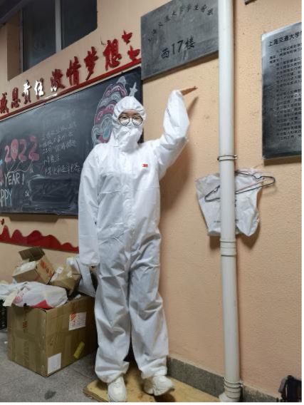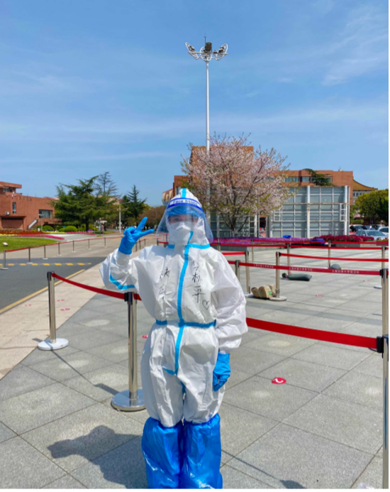 党员陈明作为学生辅导员,封校以后主动向楼栋指导老师“亮明身份”,申请成为楼栋志愿者,协助做好信息的统计,三餐及物资的发放。同时积极参与到线上抗疫志愿活动,及时向在酒店隔离的同学传达防疫政策及相关新闻、讲座安排,辅助老师做好心理疏导、排查并解决问题。在近期核酸检测中,他自发参与采样志愿活动,穿上“大白”,与更多的志愿者共同奋战于抗疫一线。他表示:“相信在大家的共同努力下,没有一个春天不会到来,战疫必胜!”