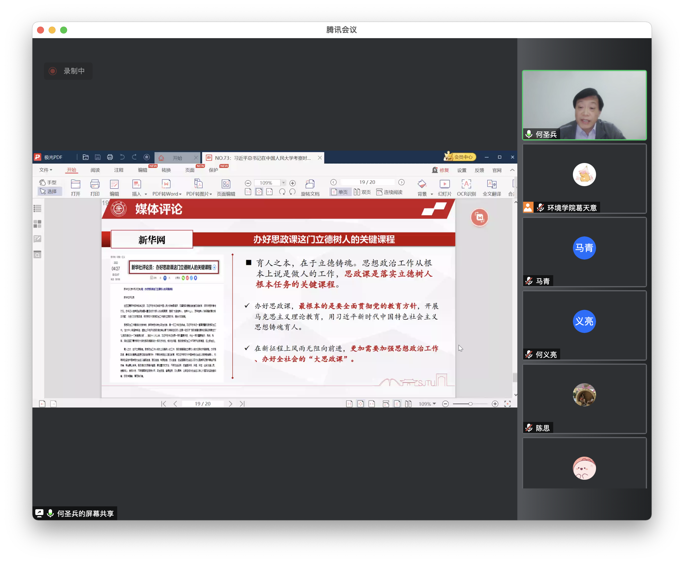 最后,中心组成员围绕讲话内容作交流发言。与会人员一致表示,本次专题学习内容丰富、思想深刻、受益匪浅。学院党政干部及全院教职工应自觉加强相关学习,牢记习近平总书记嘱托,坚定抗疫信心,坚持问题导向,坚决攻坚克难,不断改进工作方法,真正把学习成果转化为实践利器,为推动特殊时期院、校和学科发展提供不竭动力。