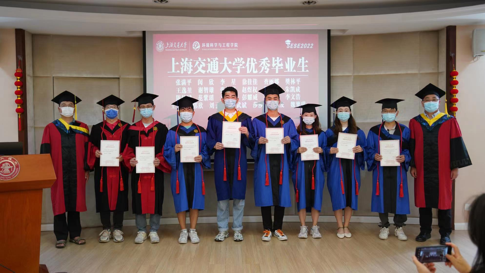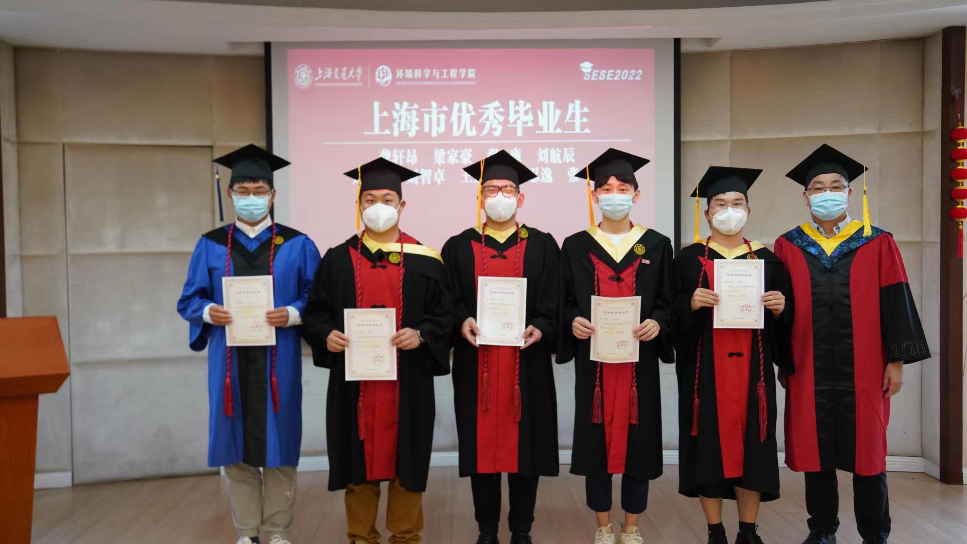 毕业生中,有一批同学在学术科研、社会服务、志愿公益、国际交流等方面全面发展,表现优异,获得优秀毕业生称号。老师们向校级优秀本科毕业生代表常崇轩、来冠铮、陈淑钰、喻轼钦、胡路发,校级优秀研究生毕业生代表张满平、李星、谢智雄、赵煜权、陈佳斌、严武斌、莎莎、魏梦琪,市级优秀本科毕业生代表龚轩昂、梁家豪、张雍、刘航辰及市级优秀研究生毕业生代表张博颁发优毕证书,并合影留念,表彰他们取得的优异成绩,勉励大家百尺竿头更进一步。